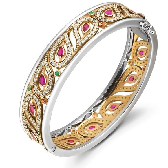 Браслет «Пейсли» из желтого золота с бриллиантами, изумрудами, сапфирами и рубинами