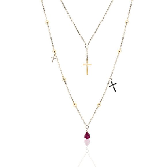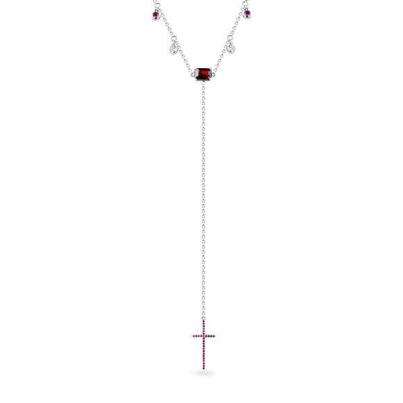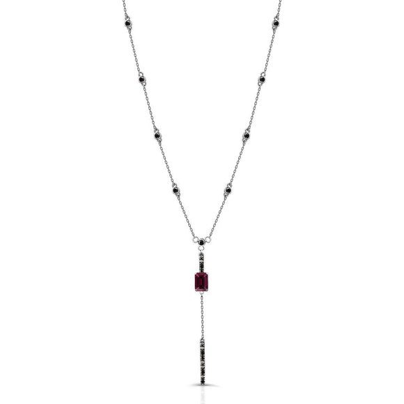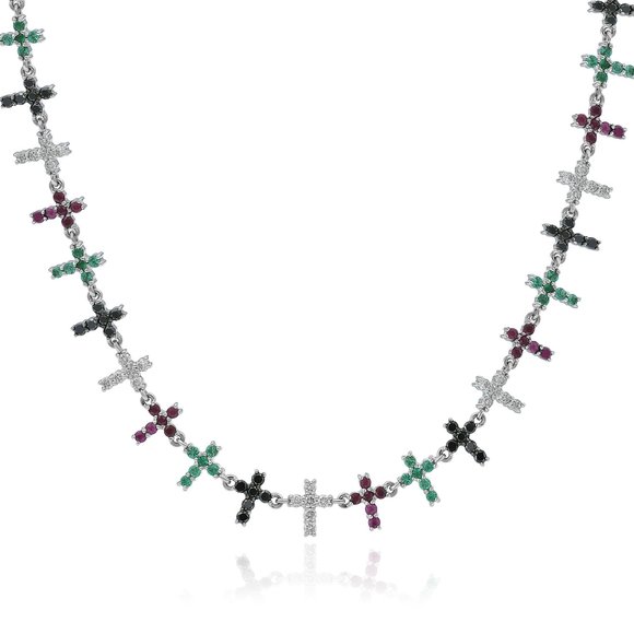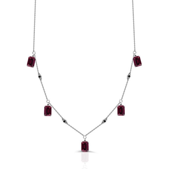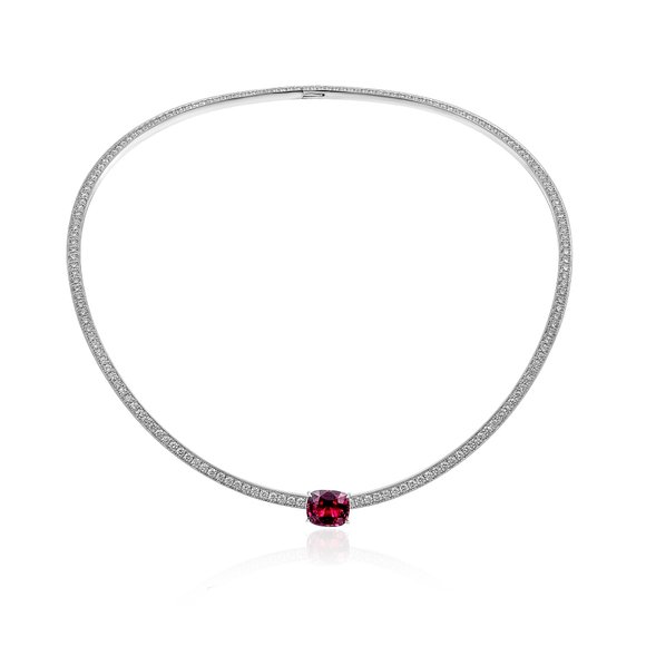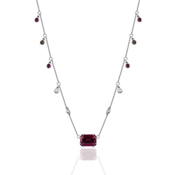 Колье из белого золота с гранатами,бриллиантами, рубином и топазами
