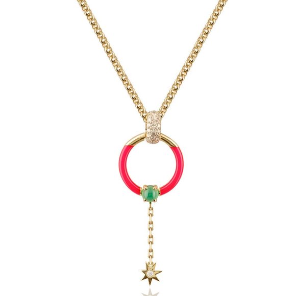 Колье из желтого золота с хризопразом и бриллиантом
