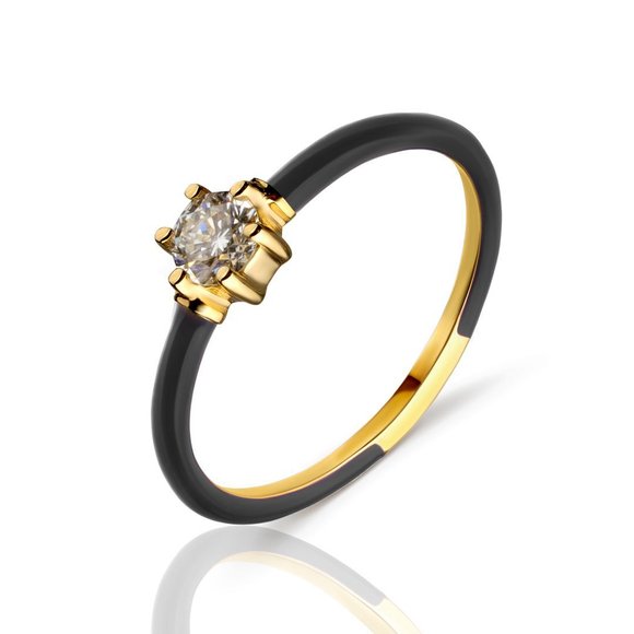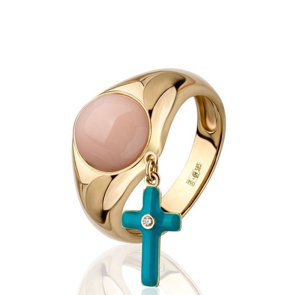 Кольцо из желтого золота с хризопразом и бриллиантами