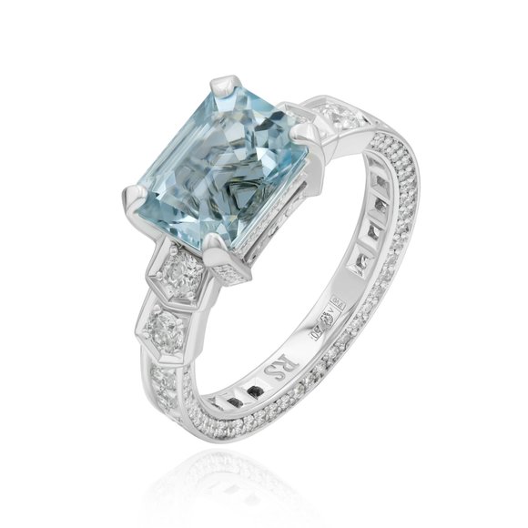 Кольцо из белого золота с изумрудом 2.2 ct, цитринами и бриллиантами