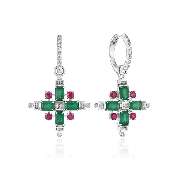 Серьги из белого золота с бриллиантами, изумрудами и рубинами 11.83 ct