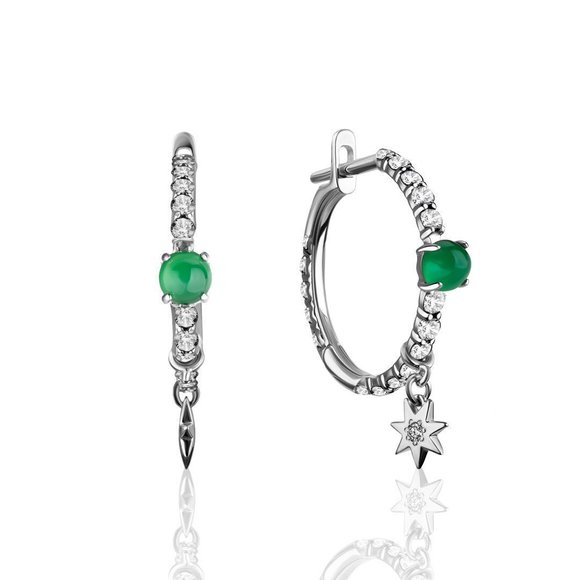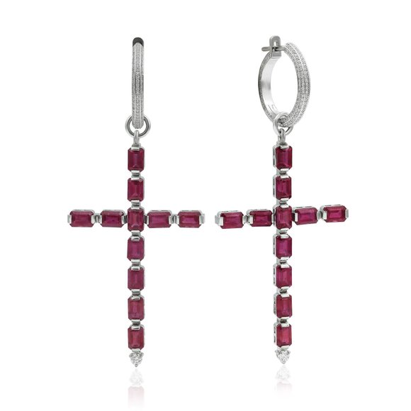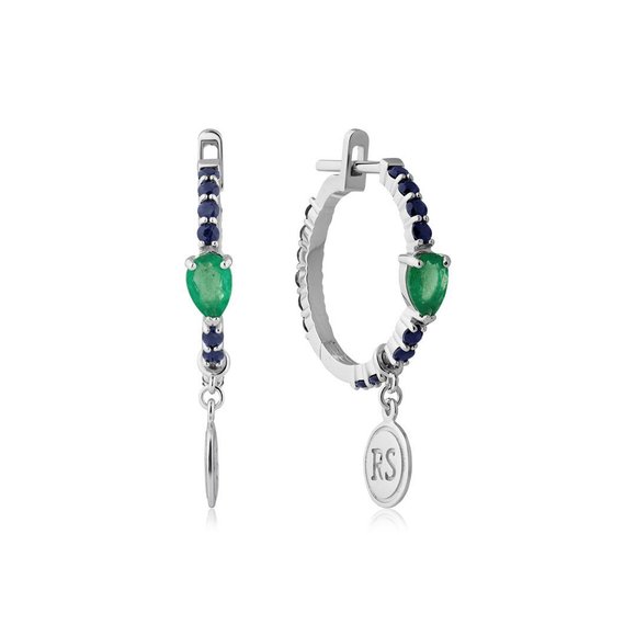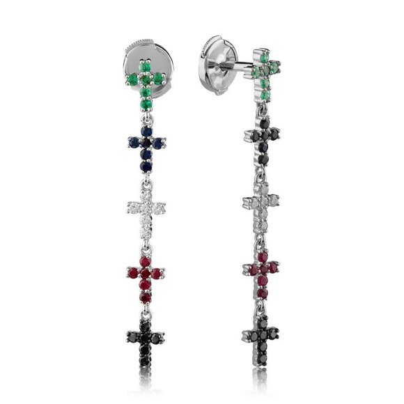 Пусеты из белого золота с сапфирами, рубинами, изумрудами и бриллиантами