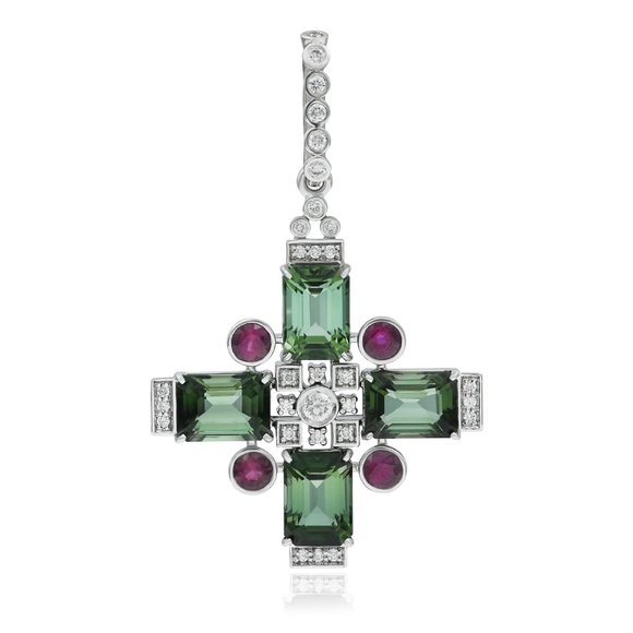 Подвеска из белого золота с рубинами, турмалинами и бриллиантами