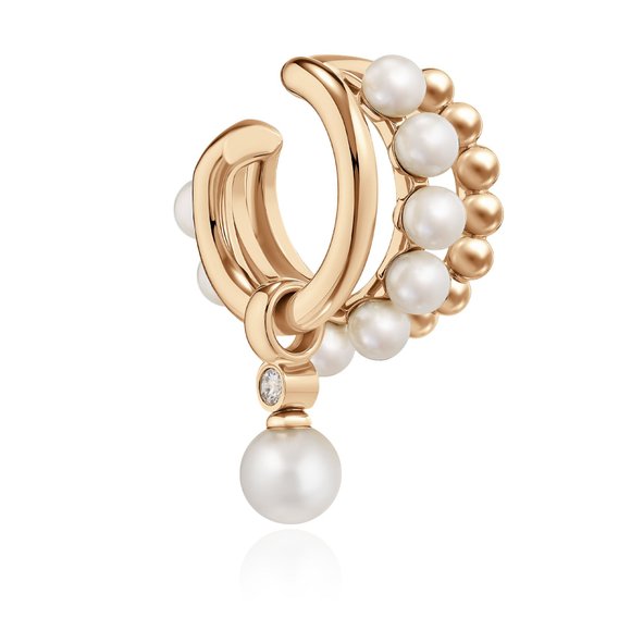 Серьга кафф из желтого золота с бриллиантом и жемчугом