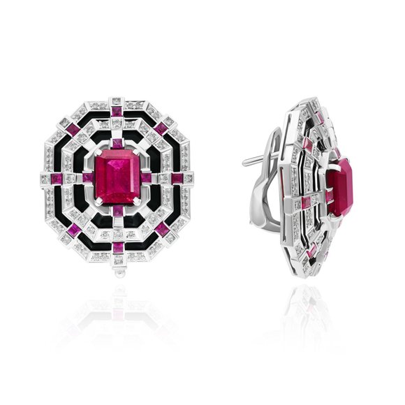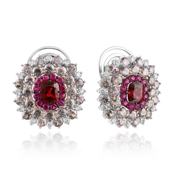 Серьги из белого золота с рубинами, шпинелью 1.97 ct и бриллиантами