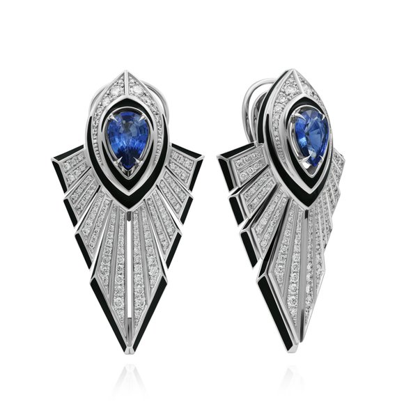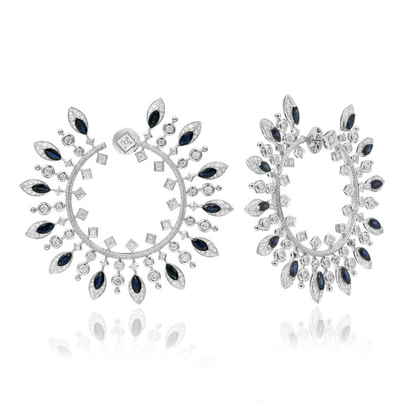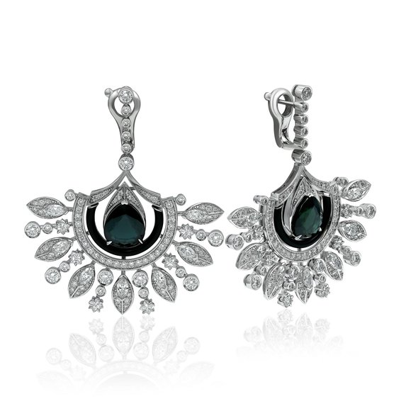 Серьги из белого золота с сапфирами, изумрудами 9.08 ct и бриллиантами