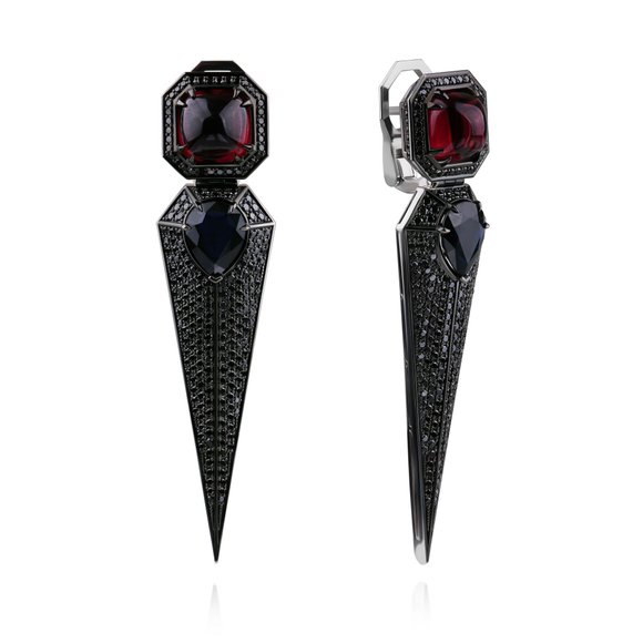 Серьги из белого золота с сапфирами, родолитами 15.75 ct и бриллиантами