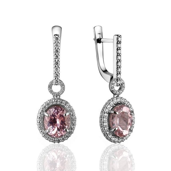 Серьги из белого золота с хризолитом, морганитами 7.28 ct, бриллиантами и сапфирами