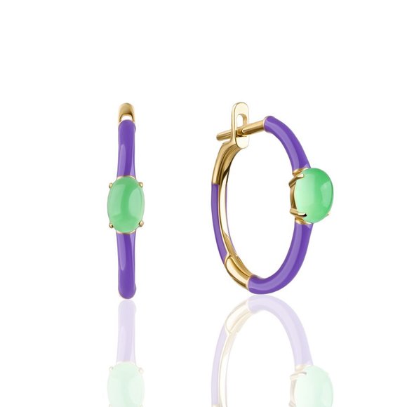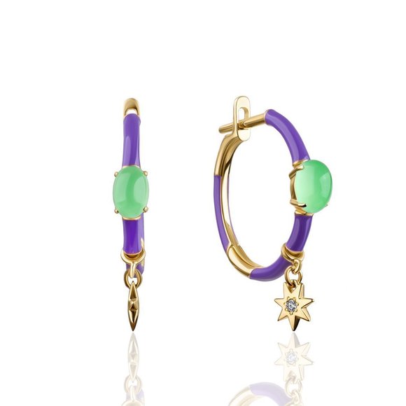 Серьги из жёлтого золота с хризопразами и бриллиантами