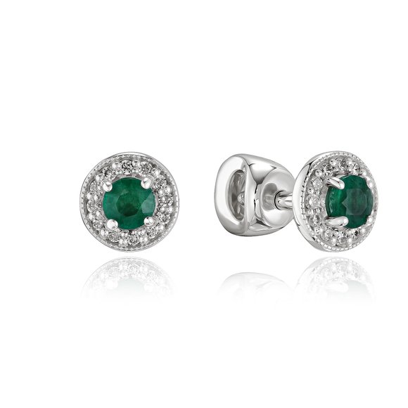 Пусеты из белого золота с изумрудами 1.14 ct и бриллиантами