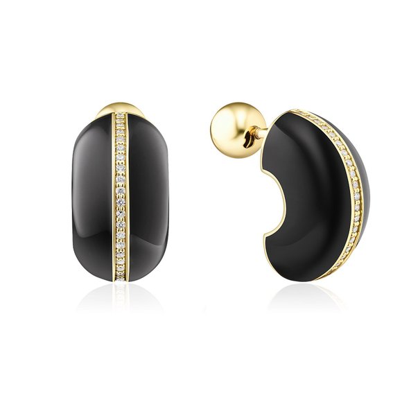 Пусеты из желтого золота с бриллиантами и кораллами