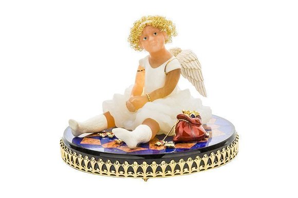 Украшение интерьера «Ангелочек» из желтого золота с кахолонгом, ониксом, халцедоном, яшмой и лазуритом