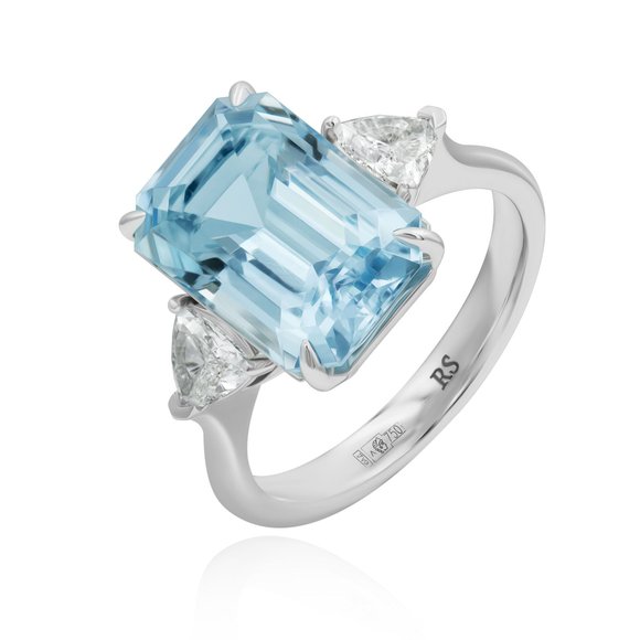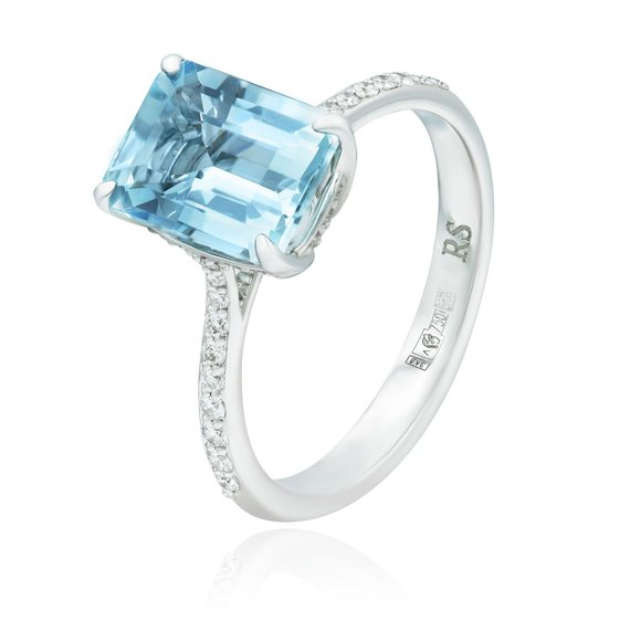 Кольцо из белого золота с бриллиантами и аквамарином 4.09 ct