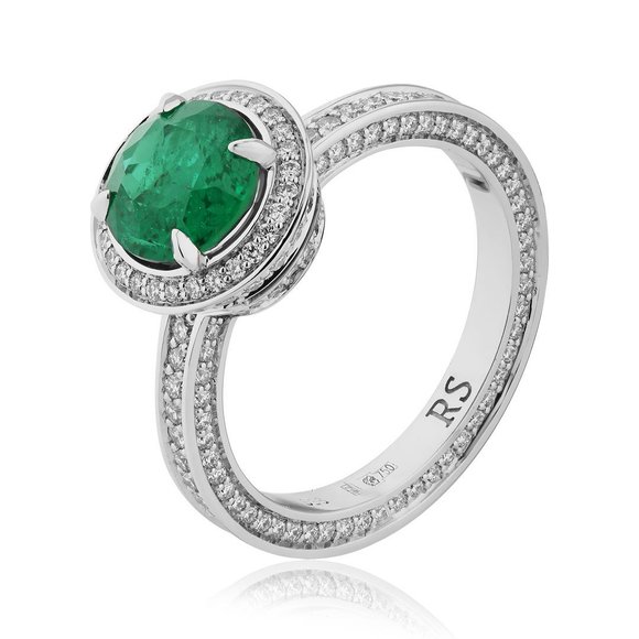 Кольцо из белого золота с изумрудом 1.97 ct и бриллиантами