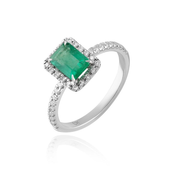 Кольцо из белого золота с изумрудом, сапфиром, бриллиантами и рубином