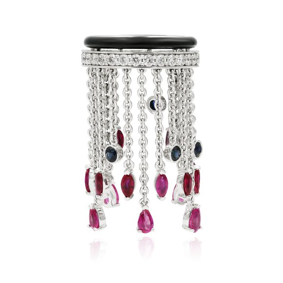 Кольцо из белого золота с родолитом 2.2 ct, шпинелями, сапфирами и бриллиантами