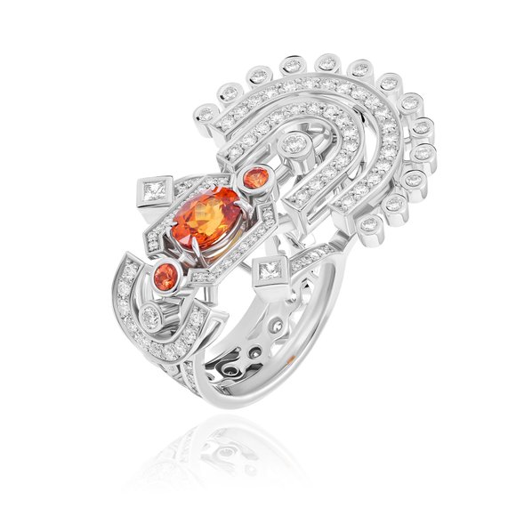 Кольцо из белого золота с сапфирами, гранатом-Спессартин 4.87 ct и бриллиантами
