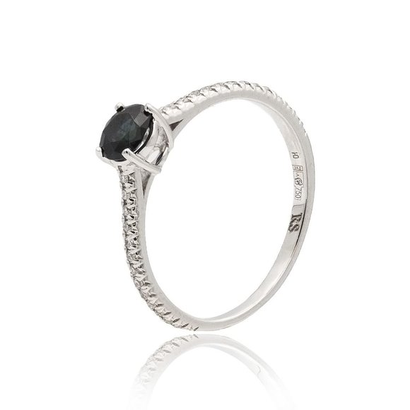 Кольцо из белого золота с сапфиром, гранатом и бриллиантами