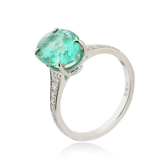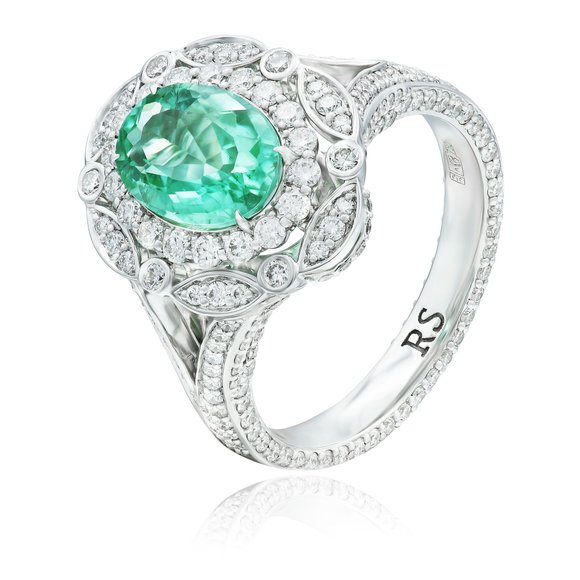 Кольцо из белого золота с турмалином параиба 2.12 ct и бриллиантами