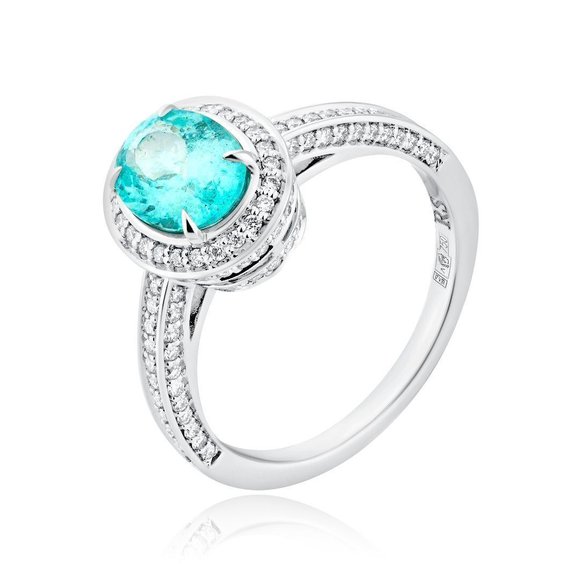 Кольцо из белого золота с турмалином параиба 1.49 ct и бриллиантами