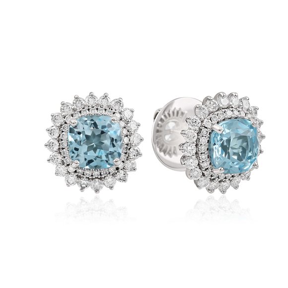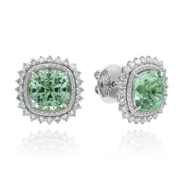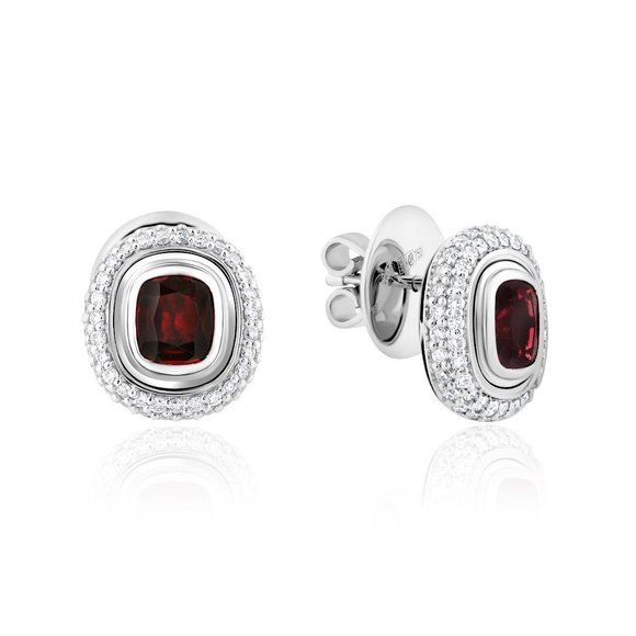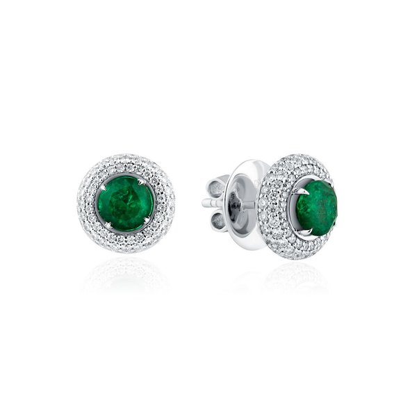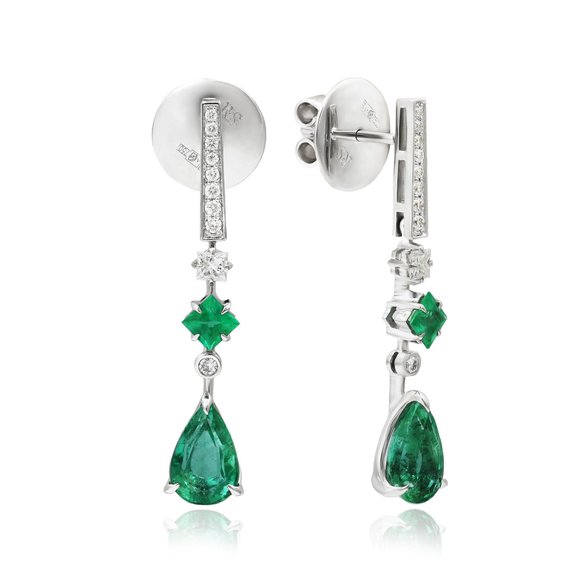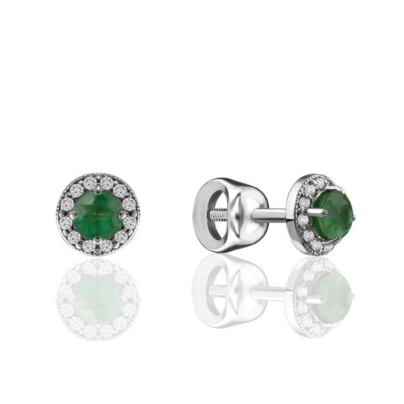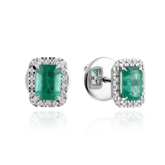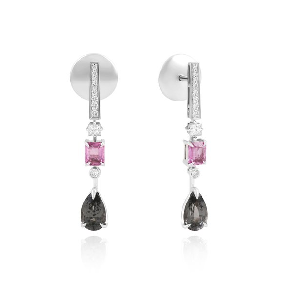Пусеты из белого золота с изумрудами, рубинами, сапфирами и бриллиантами