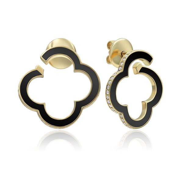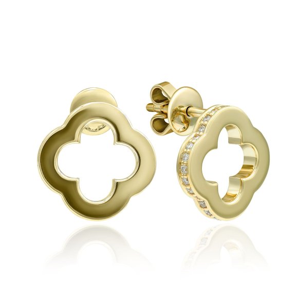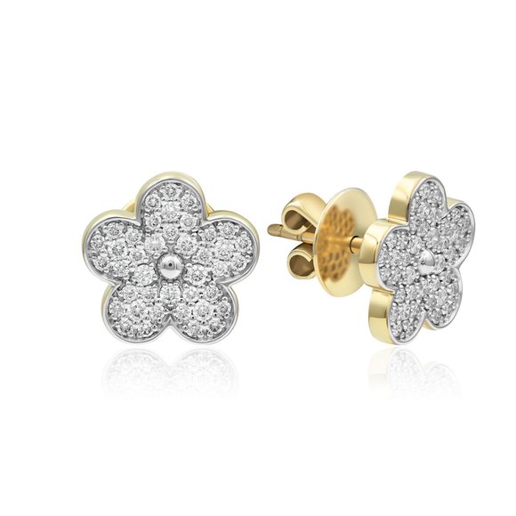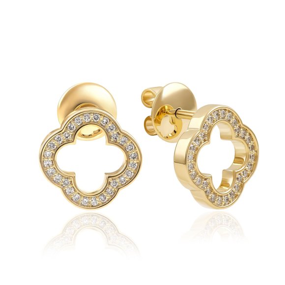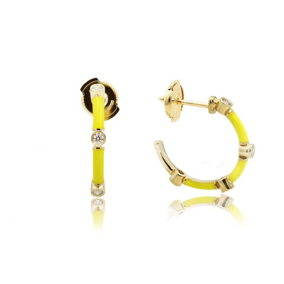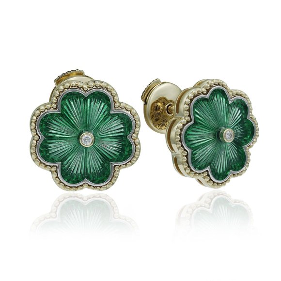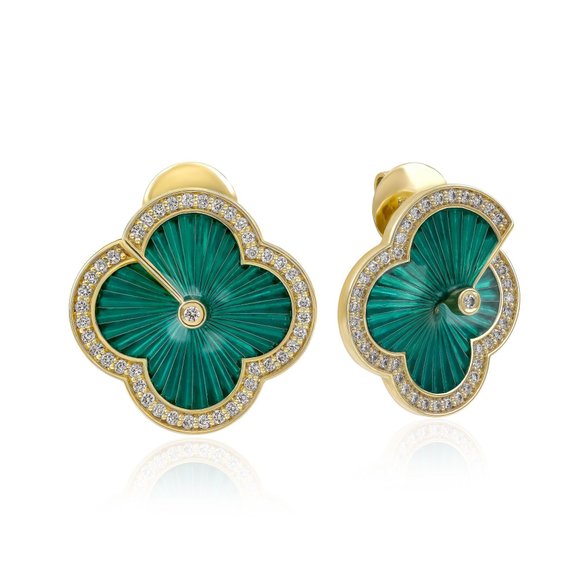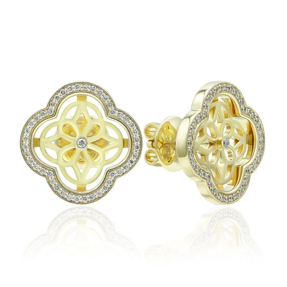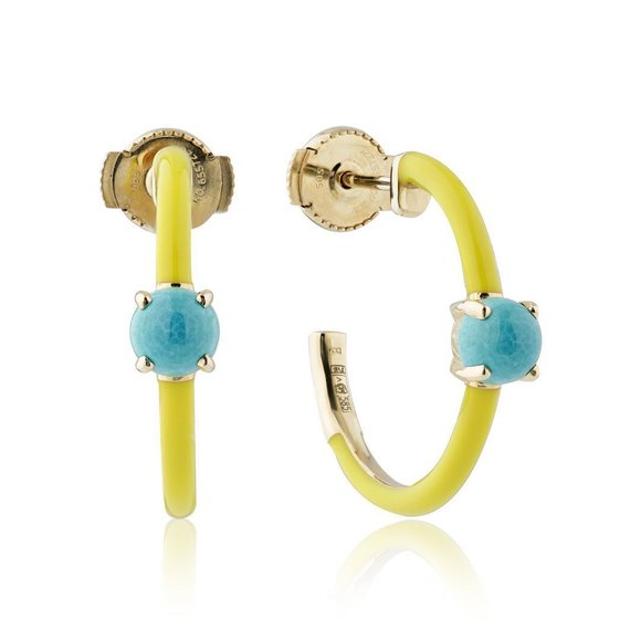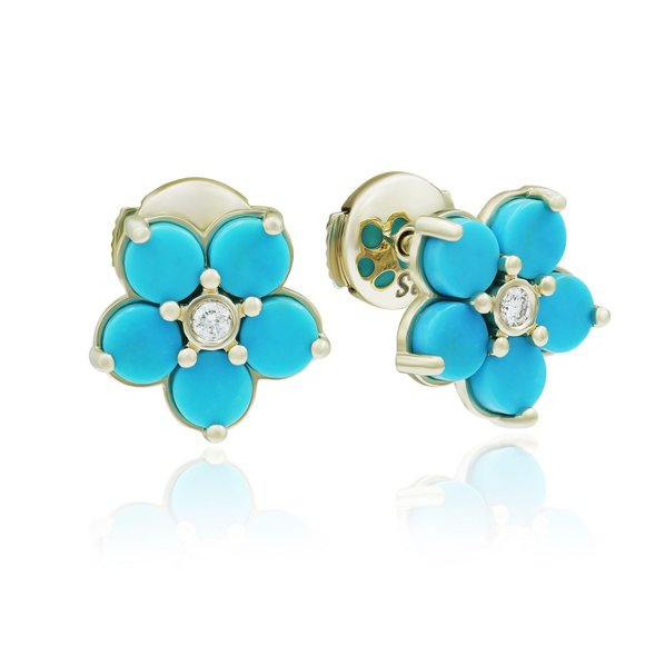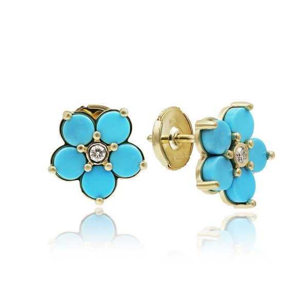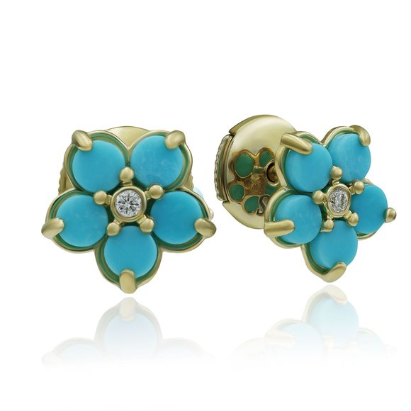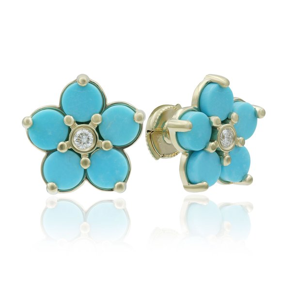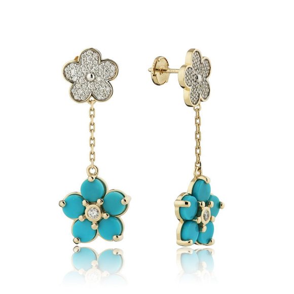 Пусеты из желтого золота с бирюзой и бриллиантами