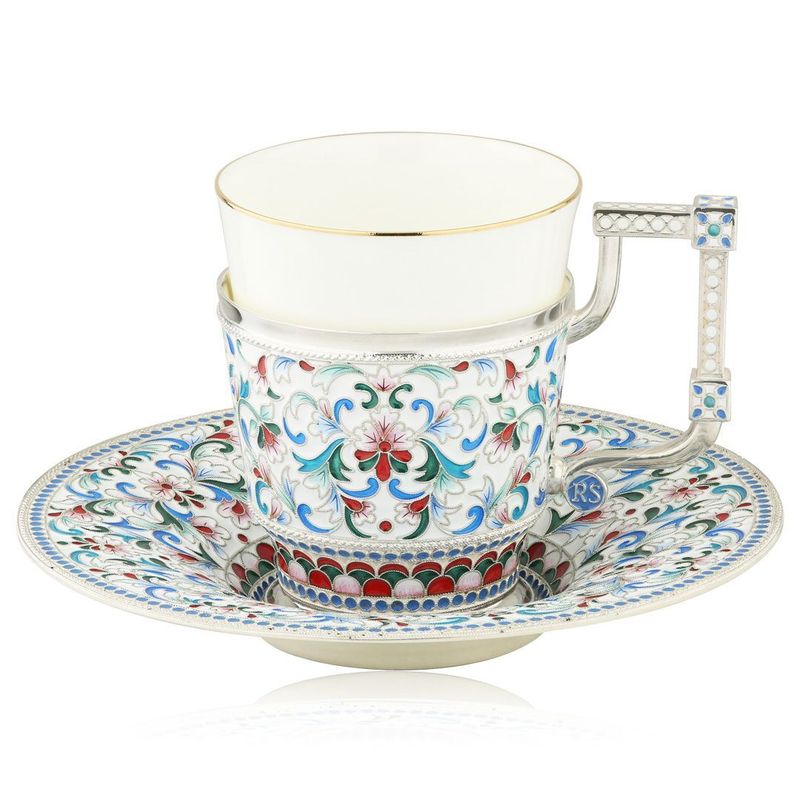 Изысканная коллекция посуды, состоящая из чайного набора, бокалов и стопок, выполненных в эмалево-филигранной технике, отражает роскошь и индивидуальность. Утонченность и элегантность, серебро и золото, изящество и блеск - переплетение двух сил рождает богатство жизни, наслаждение и удовольствие.