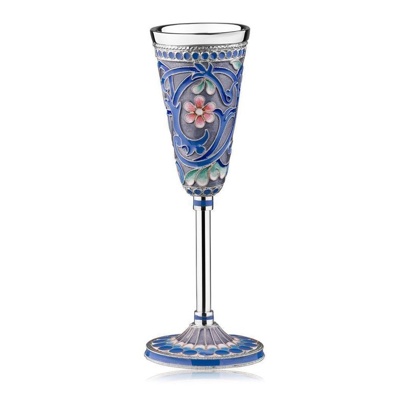 Изысканная коллекция посуды, состоящая из чайного набора, бокалов и стопок, выполненных в эмалево-филигранной технике, отражает роскошь и индивидуальность. Утонченность и элегантность, серебро и золото, изящество и блеск - переплетение двух сил рождает богатство жизни, наслаждение и удовольствие.