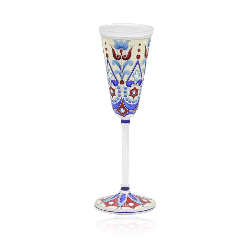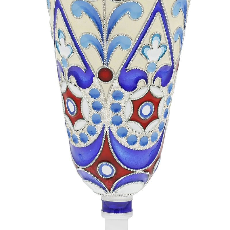 Изысканная коллекция посуды, состоящая из чайного набора, бокалов и стопок, выполненных в эмалево-филигранной технике, отражает роскошь и индивидуальность. Утонченность и элегантность, серебро и золото, изящество и блеск - переплетение двух сил рождает богатство жизни, наслаждение и удовольствие.
