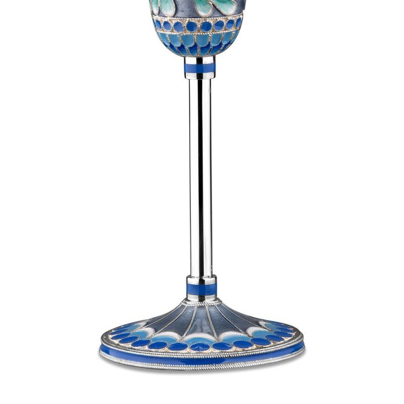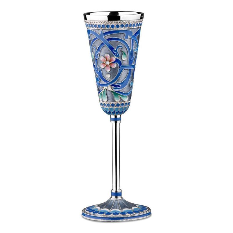 Изысканная коллекция посуды, состоящая из чайного набора, бокалов и стопок, выполненных в эмалево-филигранной технике, отражает роскошь и индивидуальность. Утонченность и элегантность, серебро и золото, изящество и блеск - переплетение двух сил рождает богатство жизни, наслаждение и удовольствие.