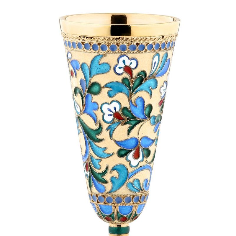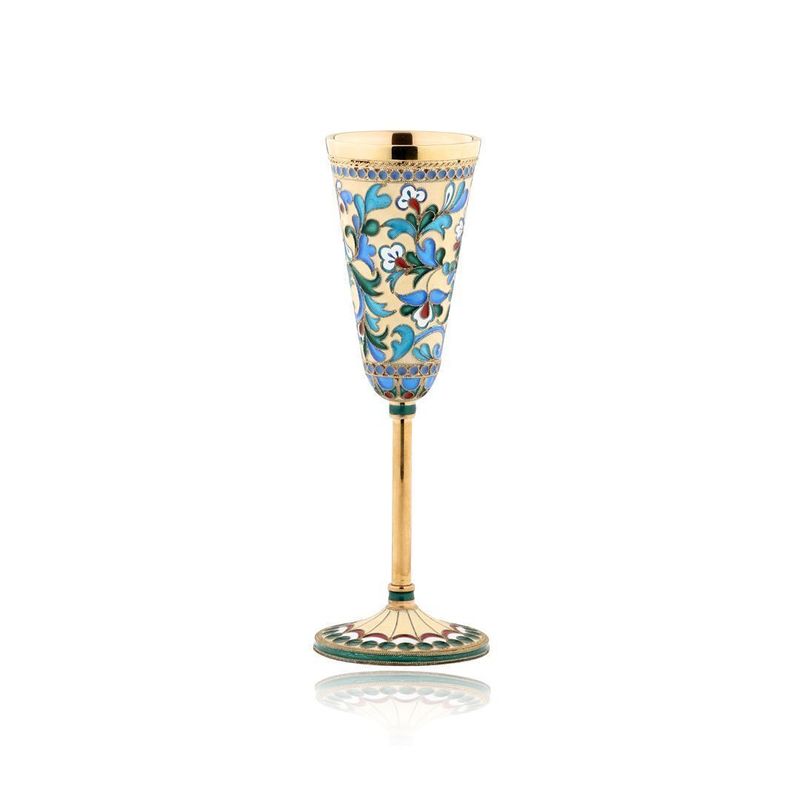 Изысканная коллекция посуды, состоящая из чайного набора, бокалов и стопок, выполненных в эмалево-филигранной технике, отражает роскошь и индивидуальность. Утонченность и элегантность, серебро и золото, изящество и блеск - переплетение двух сил рождает богатство жизни, наслаждение и удовольствие.