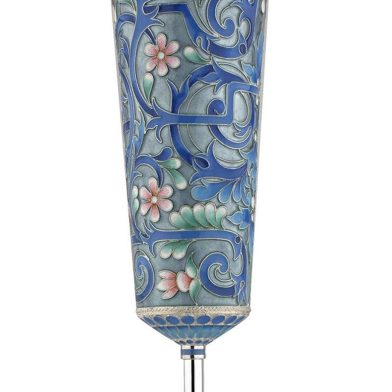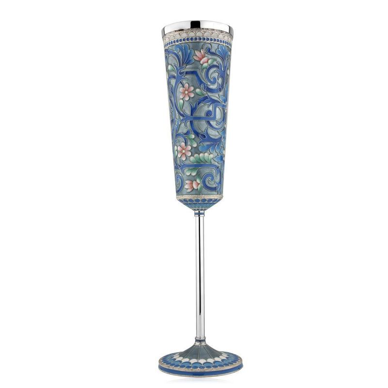 Изысканная коллекция посуды, состоящая из чайного набора, бокалов и стопок, выполненных в эмалево-филигранной технике, отражает роскошь и индивидуальность. Утонченность и элегантность, серебро и золото, изящество и блеск - переплетение двух сил рождает богатство жизни, наслаждение и удовольствие.