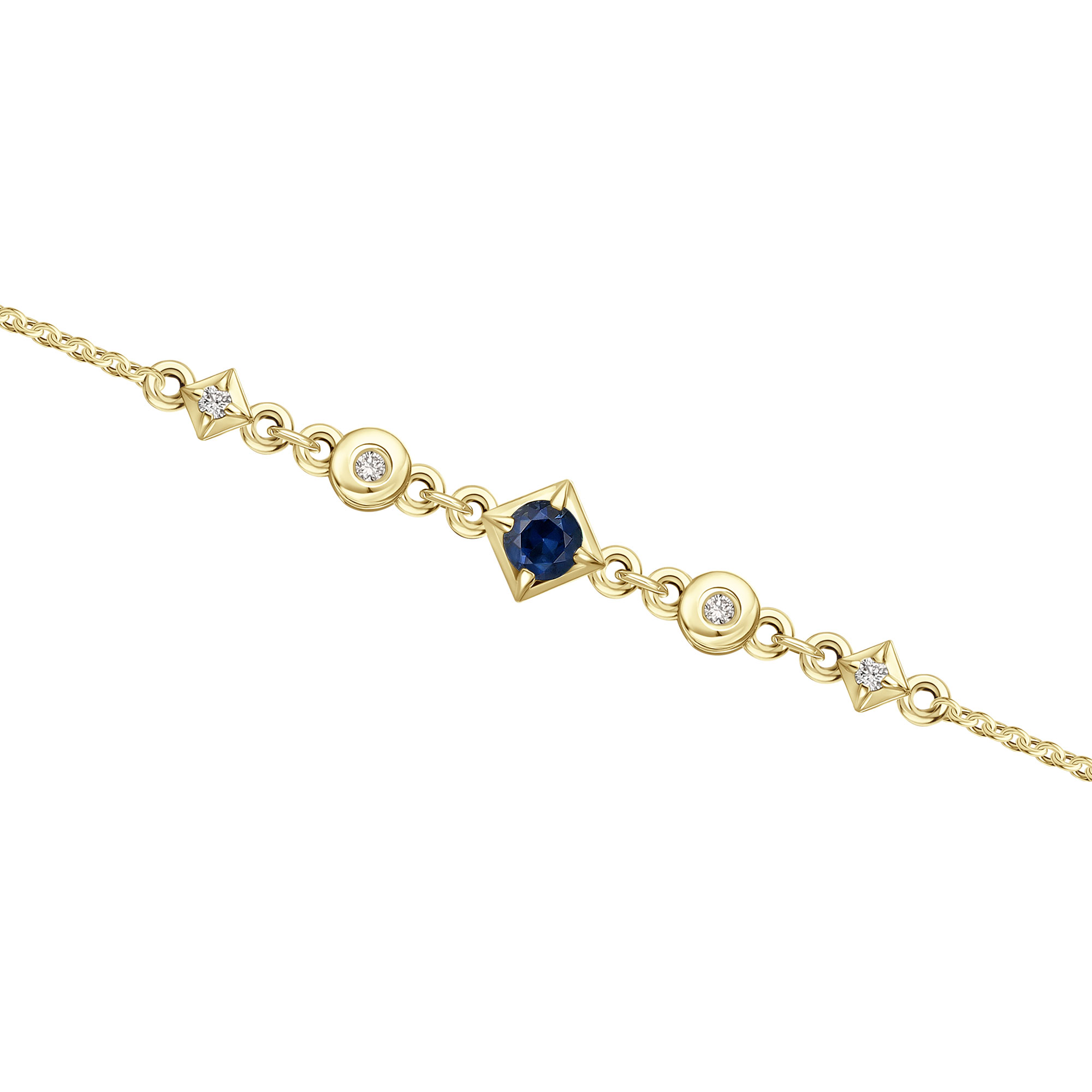 Браслет из желтого золота с сапфиром и бриллиантами