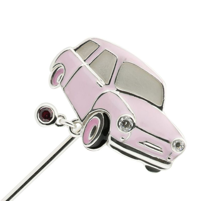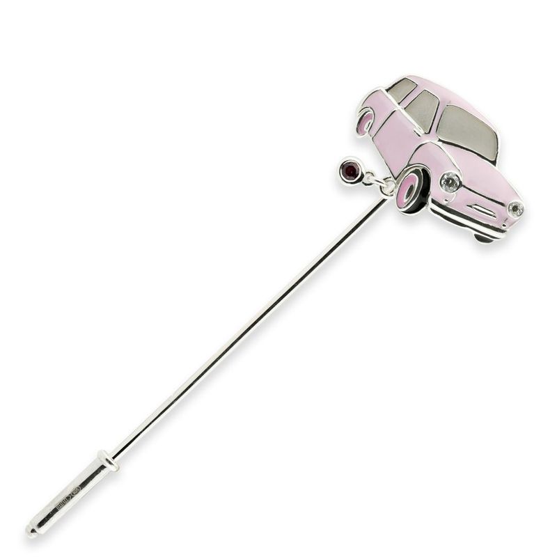Брошь «Розовая машинка» из серебра с фианитами и альмандином