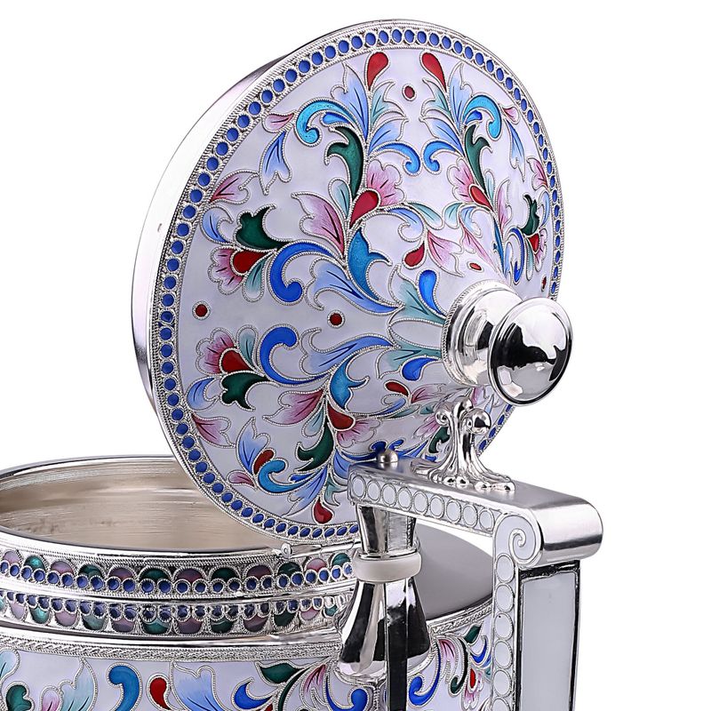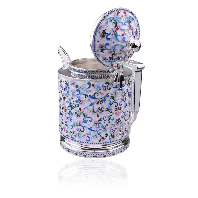 Изысканная коллекция посуды, состоящая из чайного набора, бокалов и стопок, выполненных в эмалево-филигранной технике, отражает роскошь и индивидуальность. Утонченность и элегантность, серебро и золото, изящество и блеск - переплетение двух сил рождает богатство жизни, наслаждение и удовольствие.