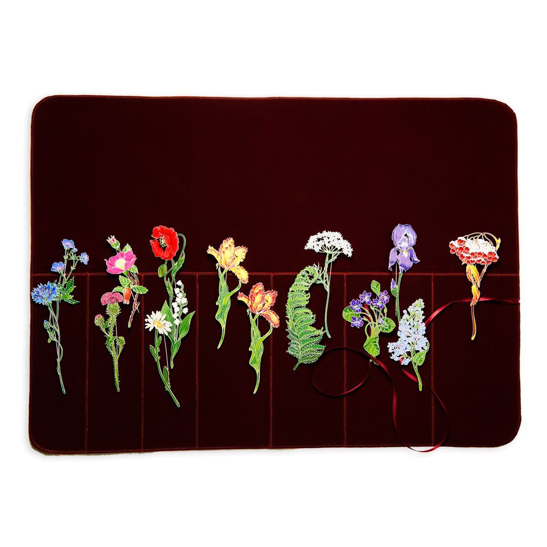 Каждая из брошей, которые я ношу связкой, букетом из цветов и травы, имеет номер лимитированной серии. Позвольте мне представить мой гербарий из цветов, которые не вянут».