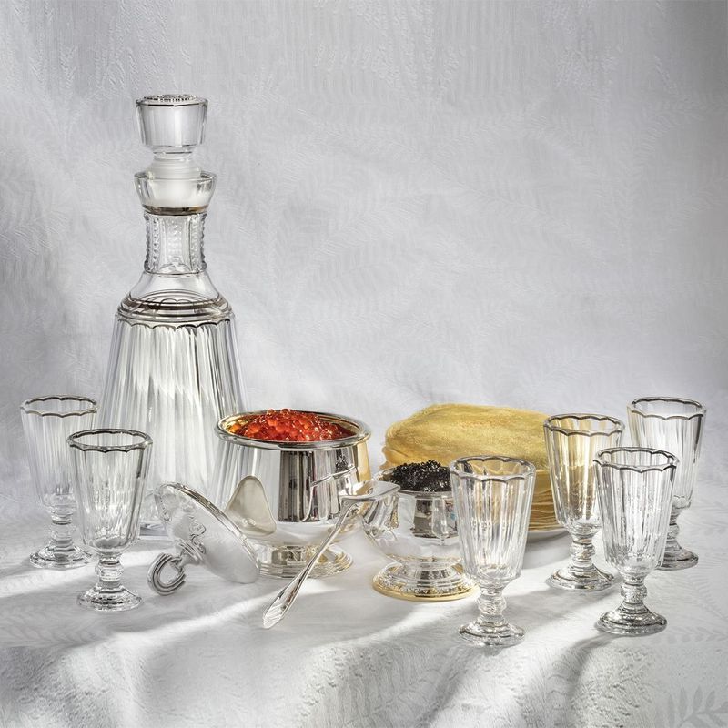 Коллекция состоит из сорока предметов сервировки, на каждый из которых может быть нанесена монограмма или герб. Утонченное столовое серебро, роскошное в своей простоте, символизирует традиционные ценности и преемственность поколений.