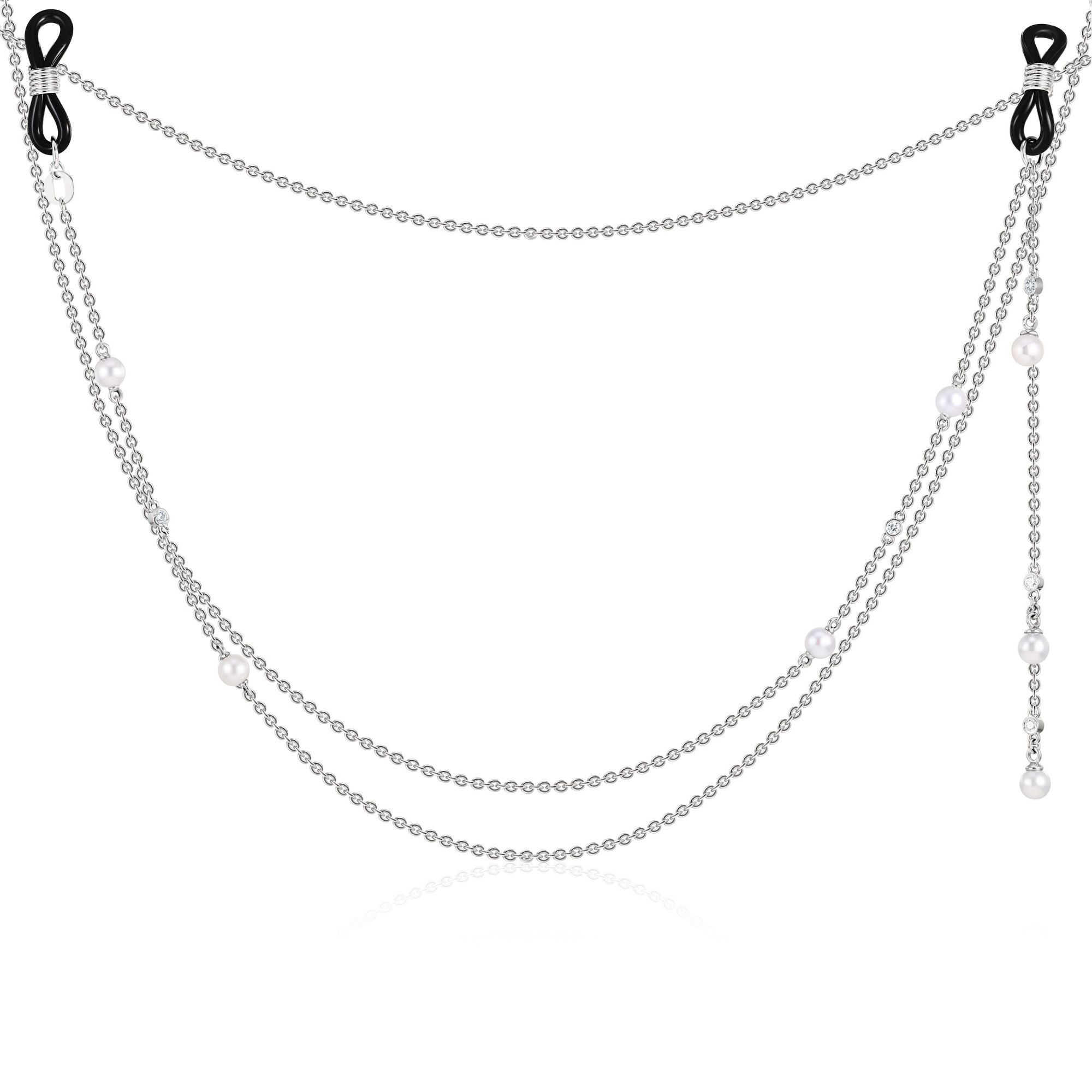 Колье для очков из белого золота с бриллиантами и жемчугом