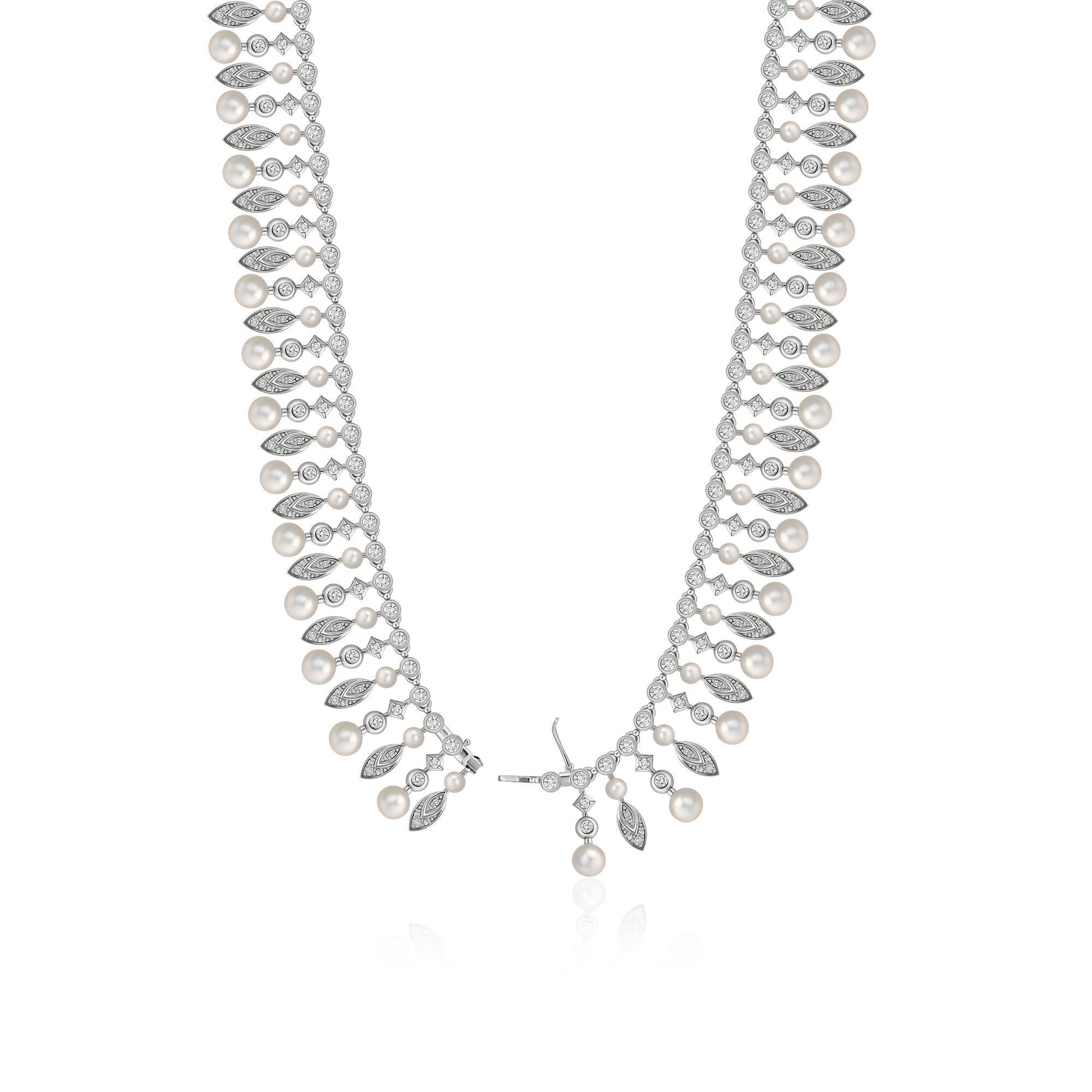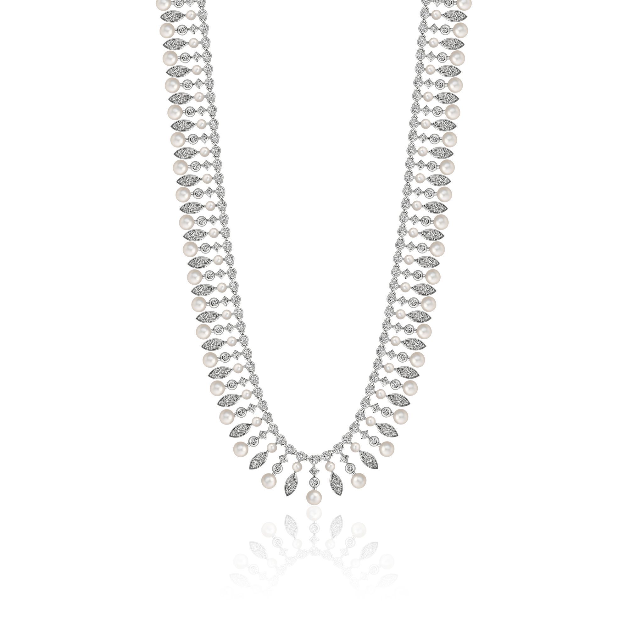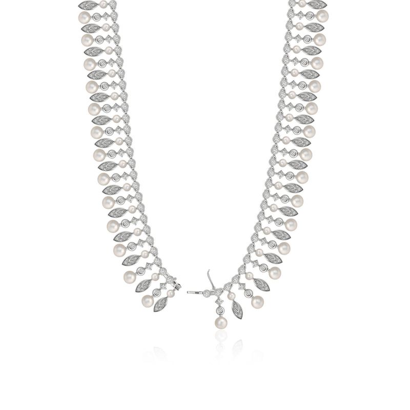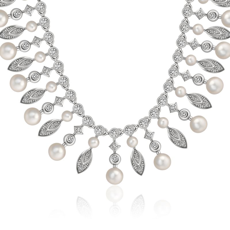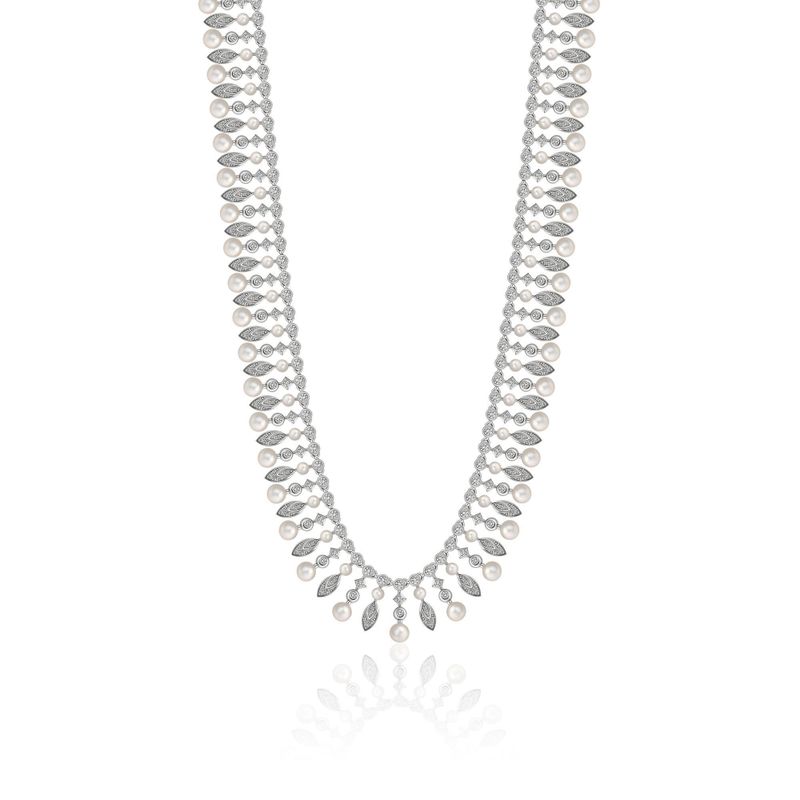 Колье из белого золота с бриллиантами и жемчугом