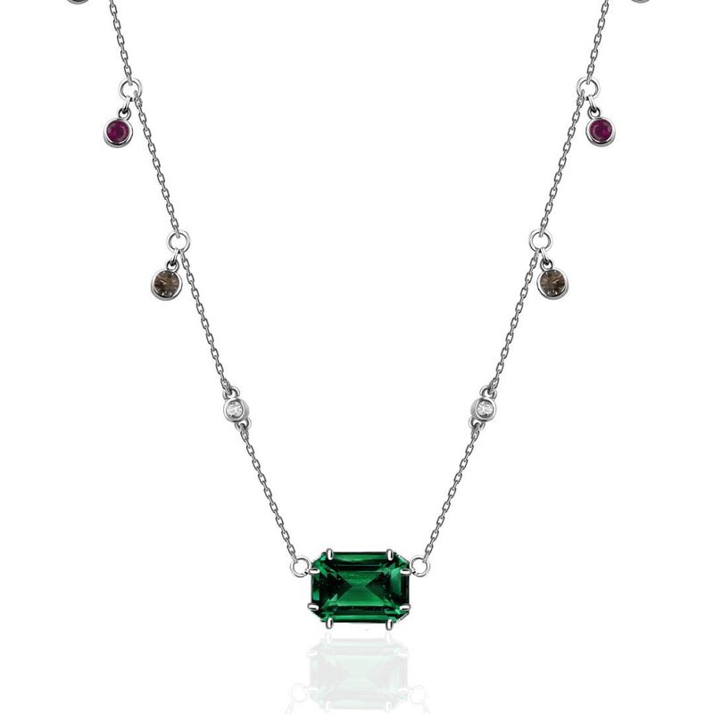 Колье из белого золота с рубинами, цитринами, бриллиантами и турмалином