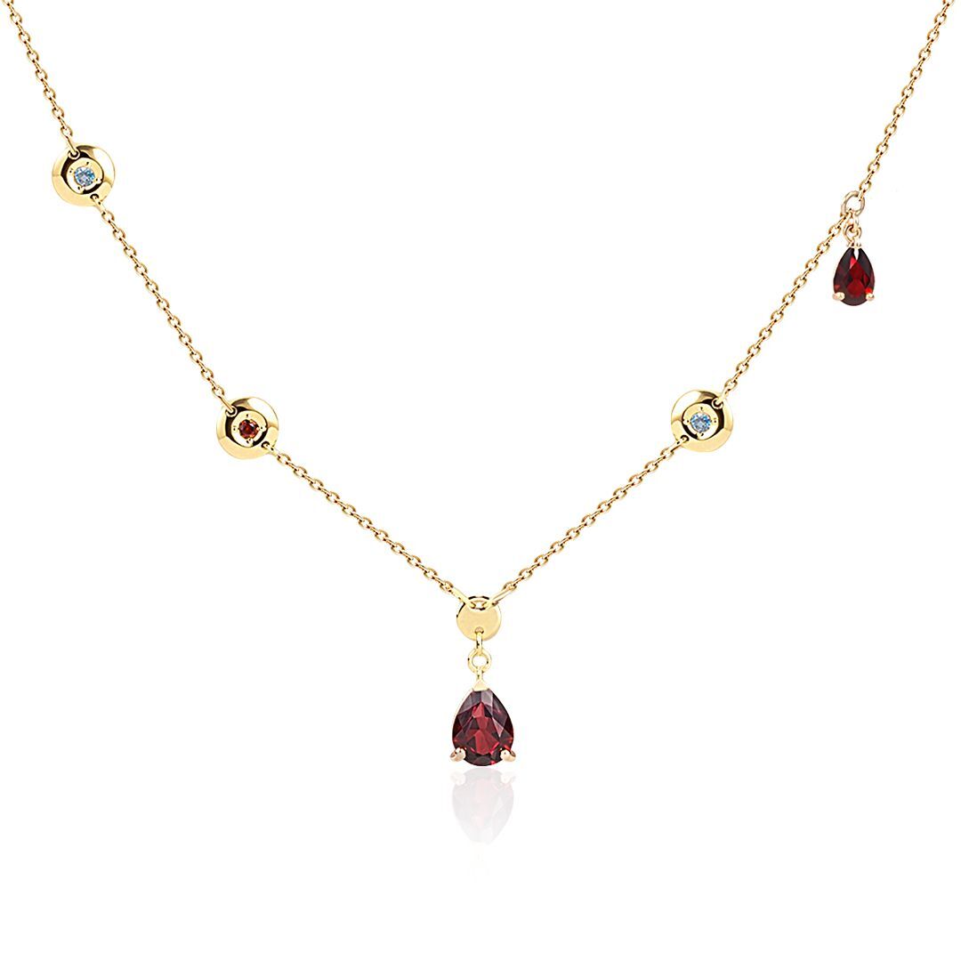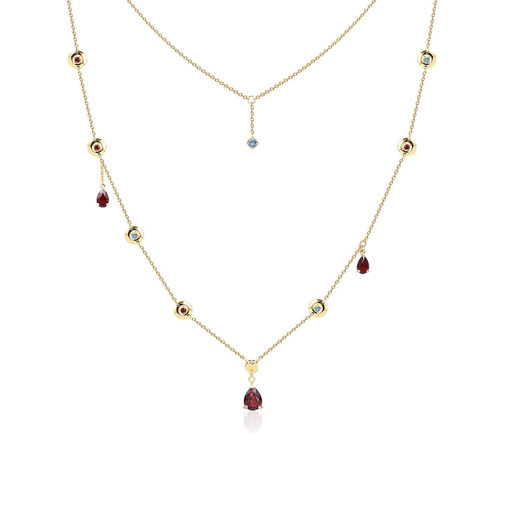Колье из желтого золота с гранатами, топазами и бриллиантом
