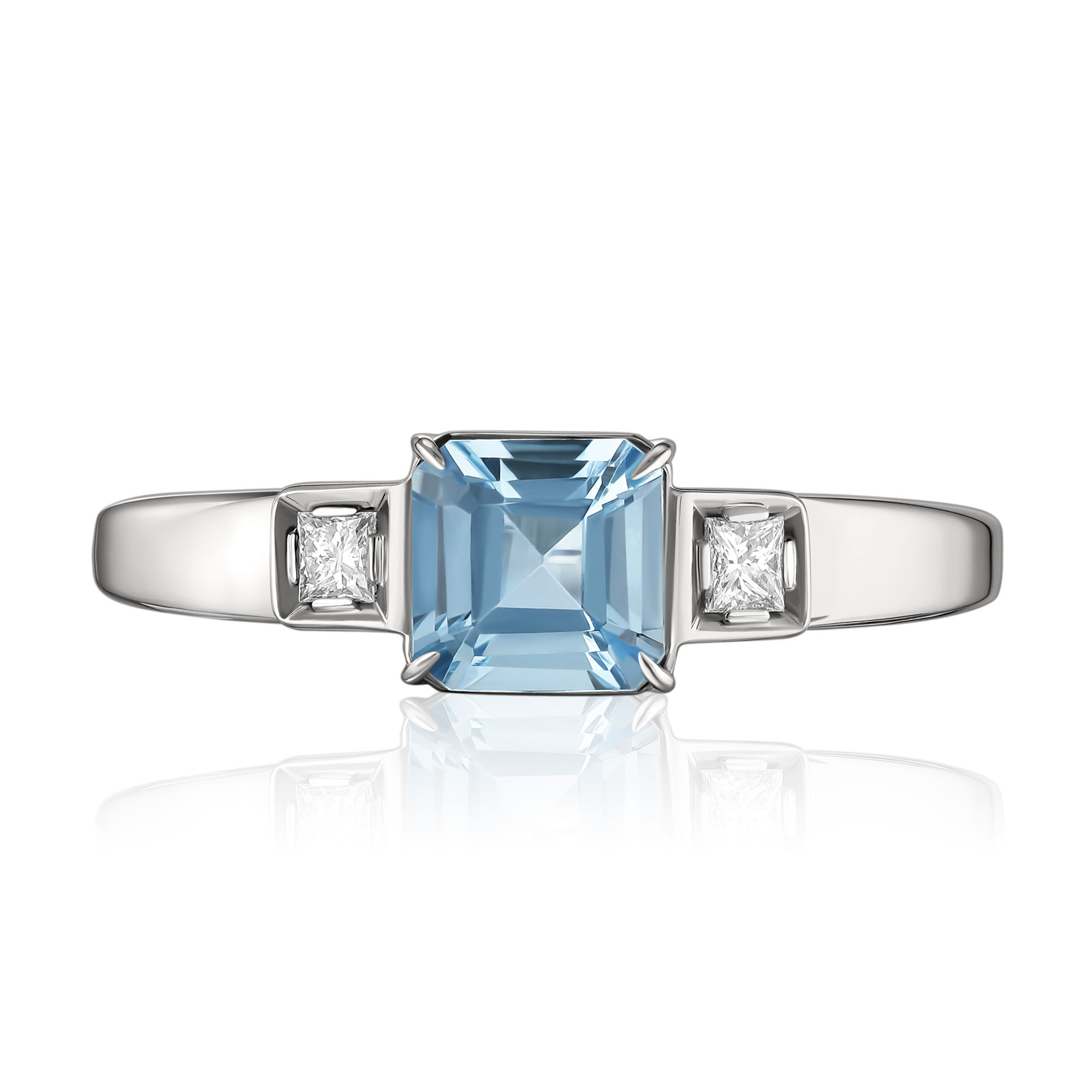 Кольцо из белого золота с аквамарином и бриллиантами
