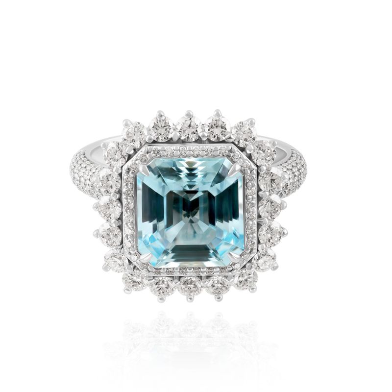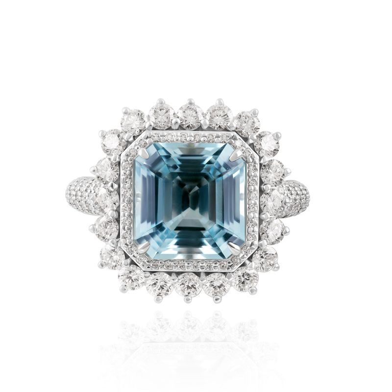 Кольцо из белого золота с бриллиантами и аквамарином 4.29 ct