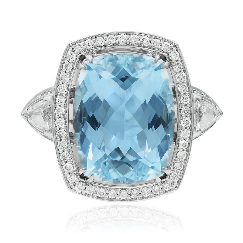 Кольцо из белого золота с бриллиантами и аквамарином 9.55 ct