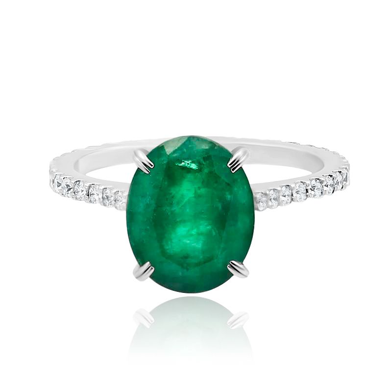 Кольцо из белого золота с бриллиантами и изумрудом 3.8 ct