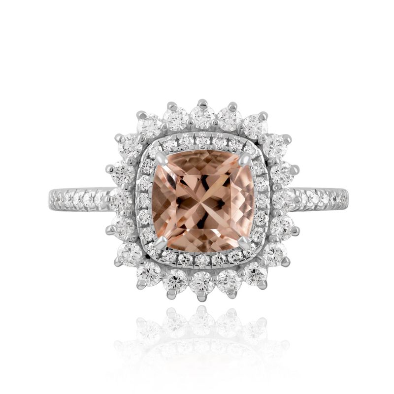 Кольцо из белого золота с бриллиантами и морганитом 1.4 ct