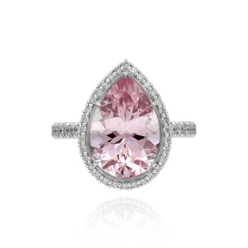 Кольцо из белого золота с бриллиантами и морганитом 4.66 ct