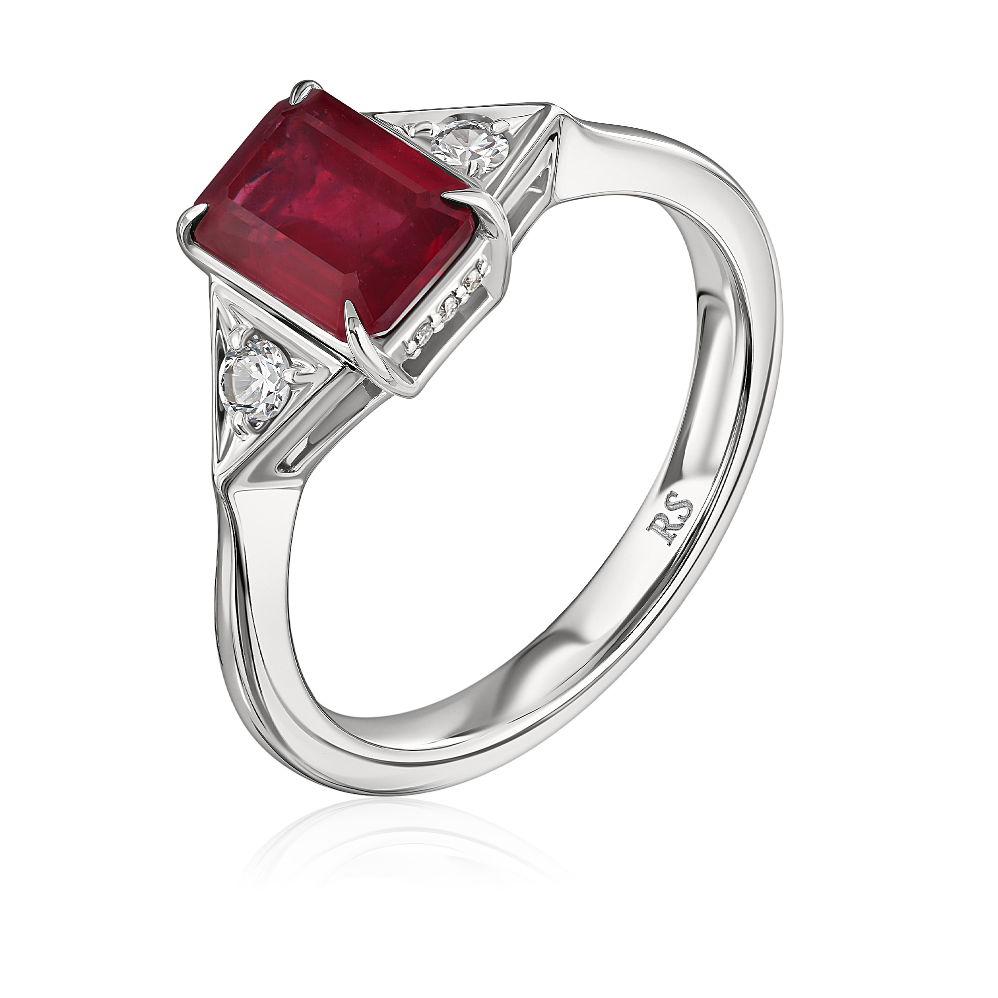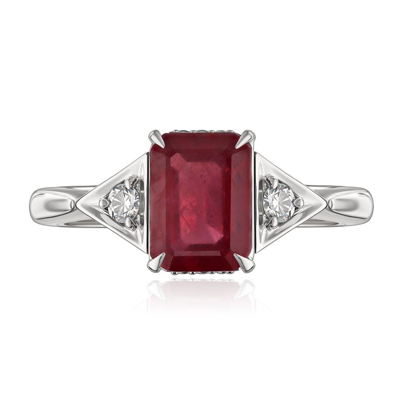 Кольцо из белого золота с бриллиантами и рубином