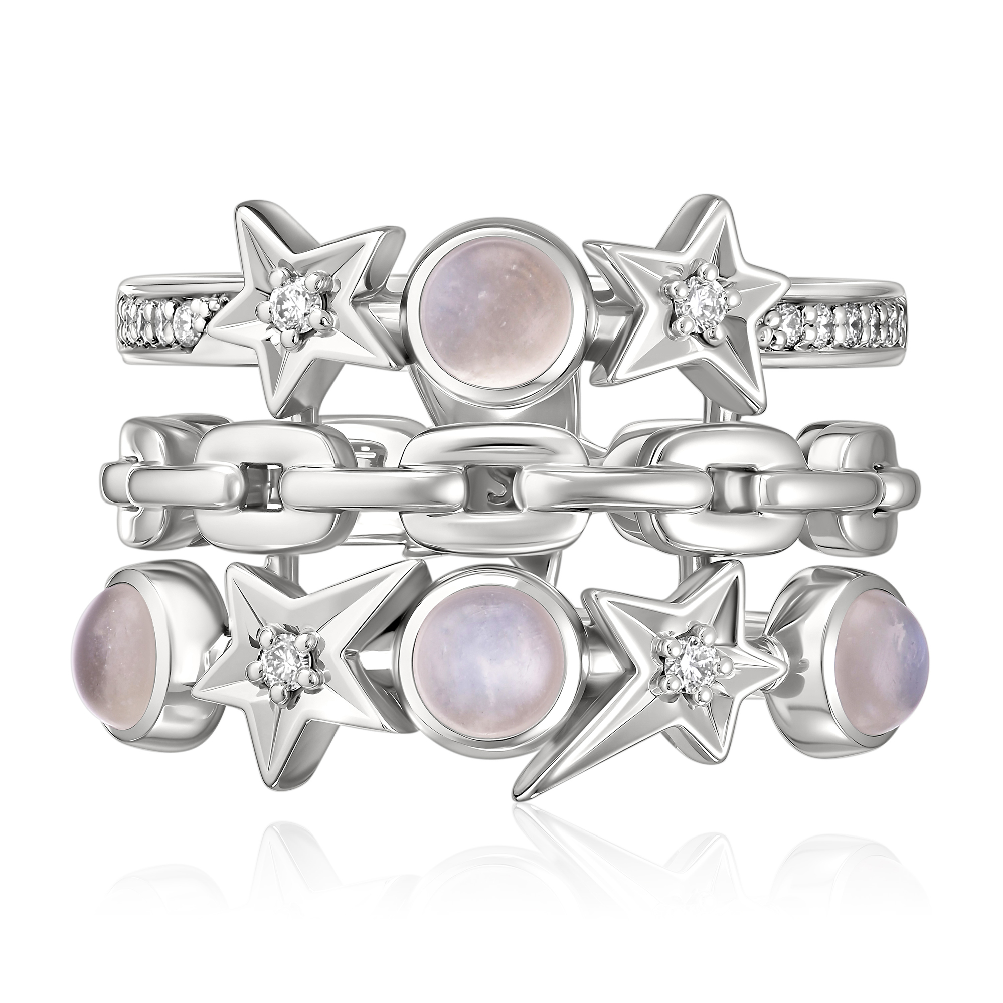Кольцо из белого золота с лунным камнем и бриллиантами